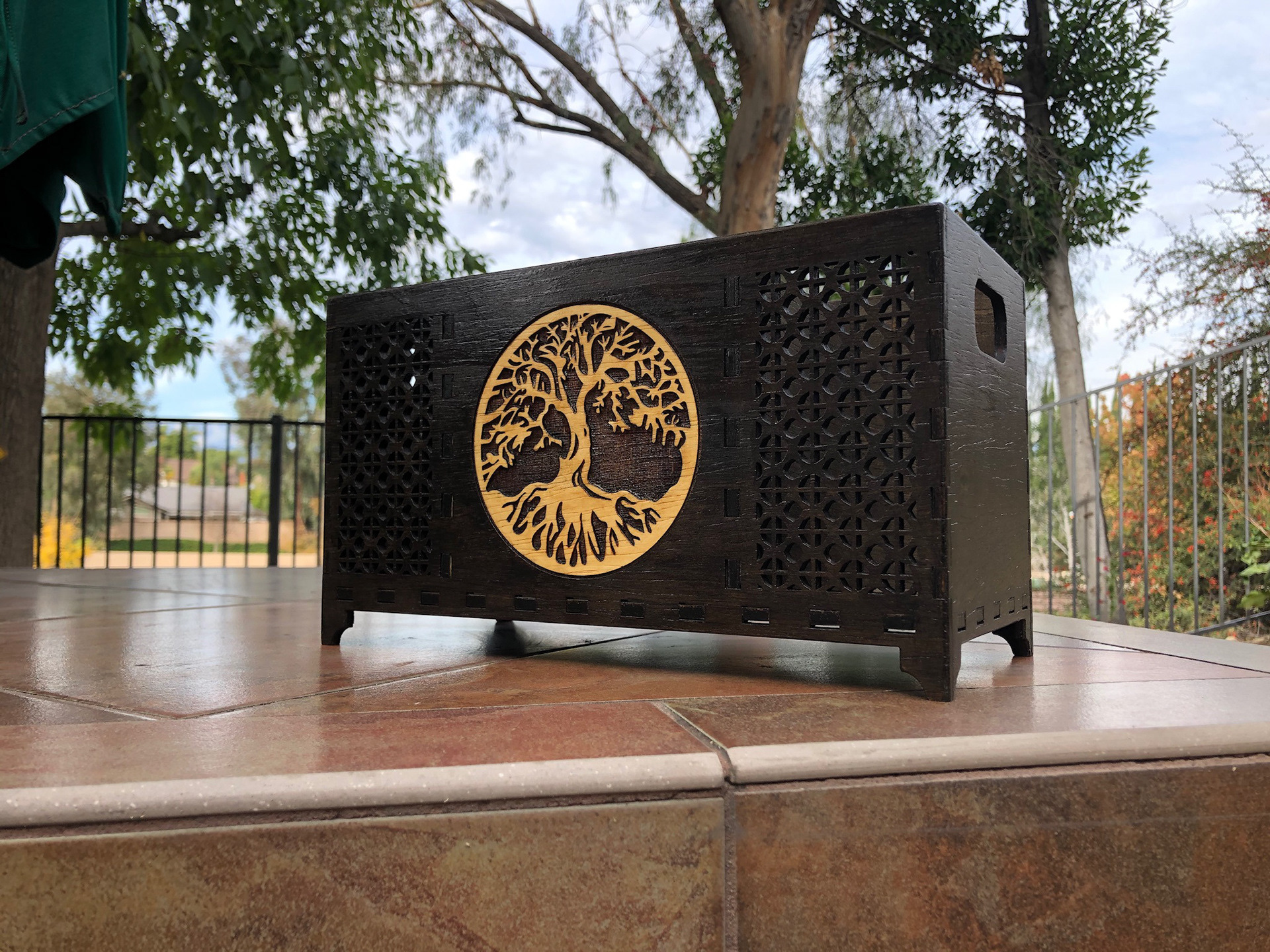 I was finishing up the gifts for the year, and needed one more. I settled on a caddy for some bath goods, and worked out a design using a finger-jointed box base with some enhancements. Cut on the Glowforge from cheap Home Depot Sande ply and stained walnut-toned.